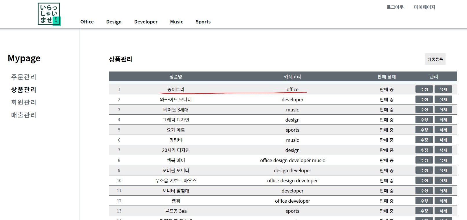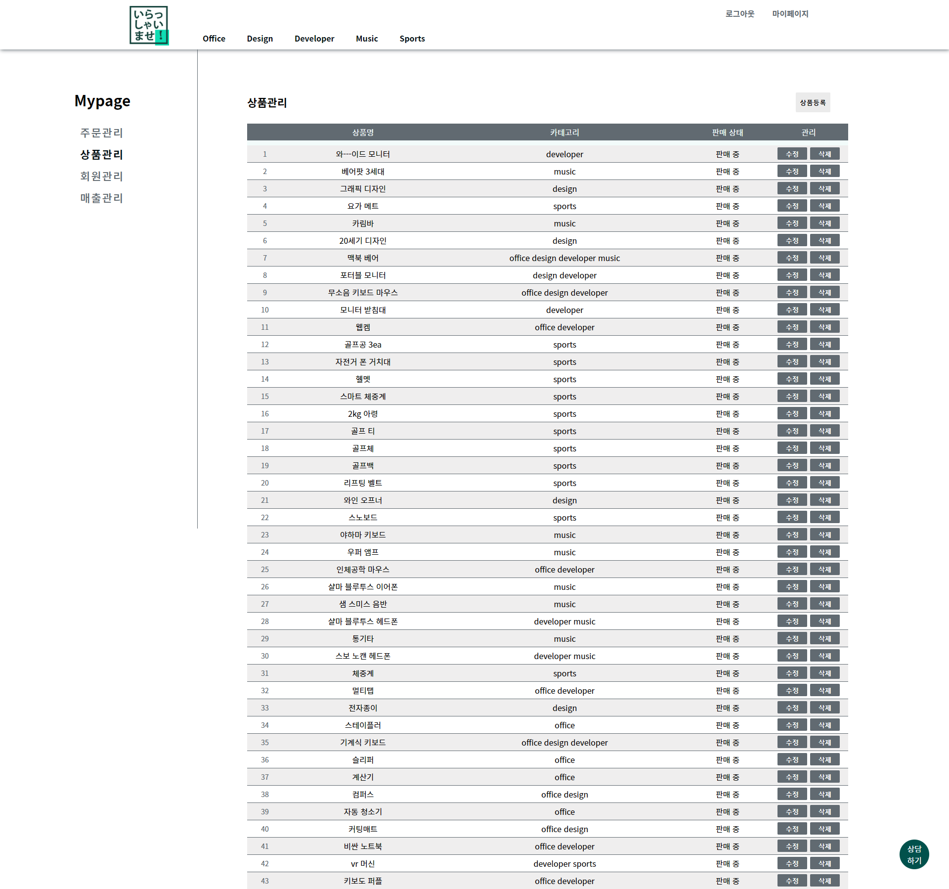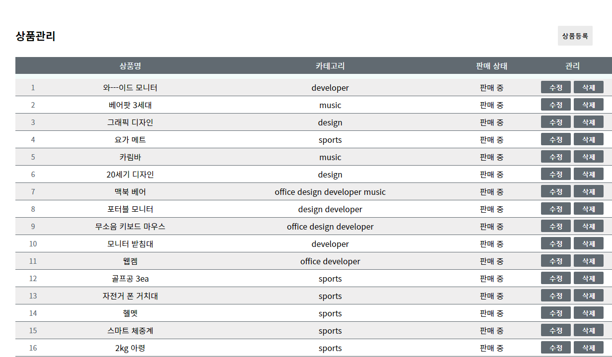 상품 관리 페이지 입니다