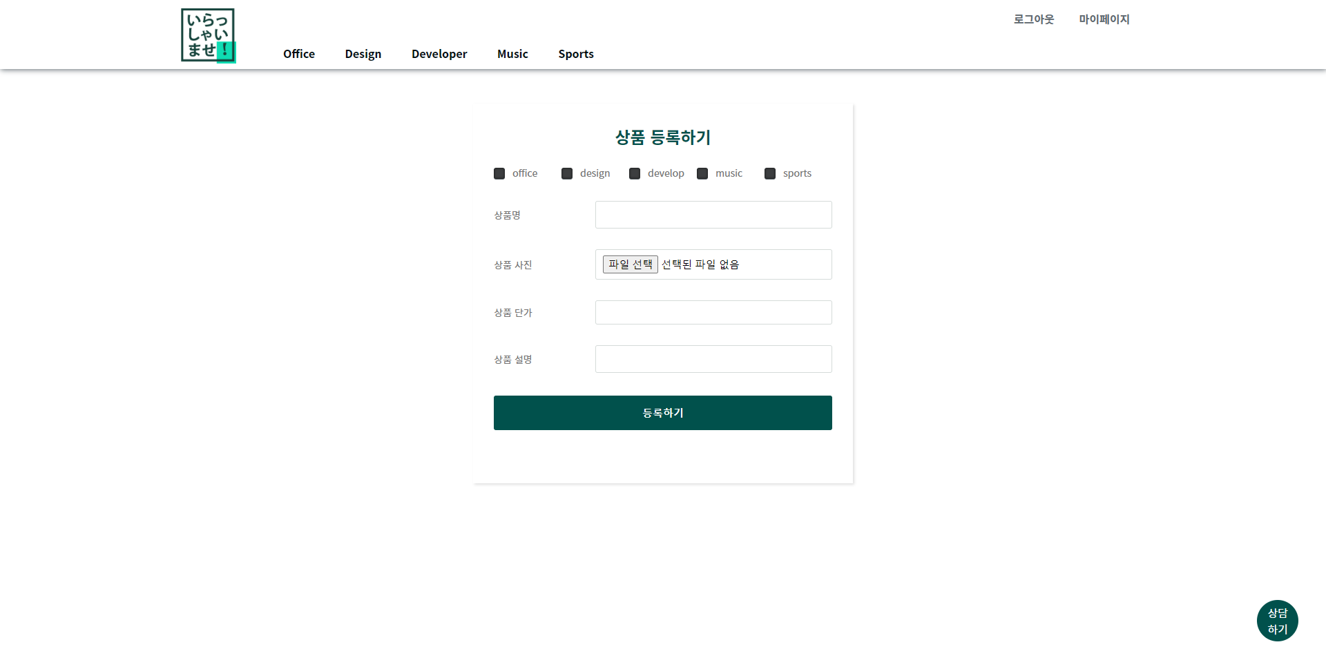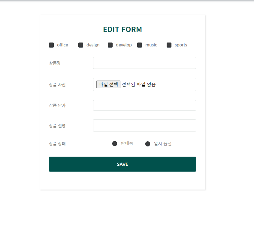 상품등록은 이런 페이지를 통해 생성하게 됩니다