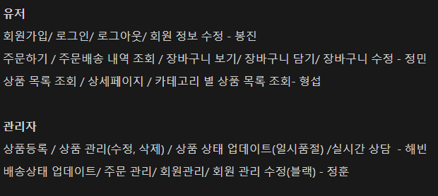 저희 조 역할 분담 정보를 보여드리겠습니다
