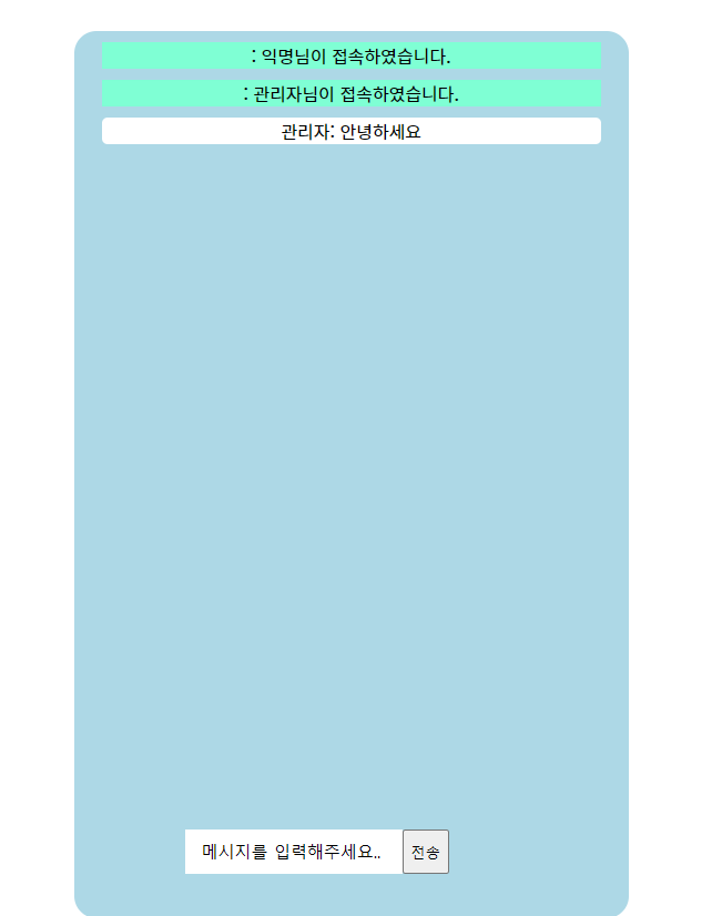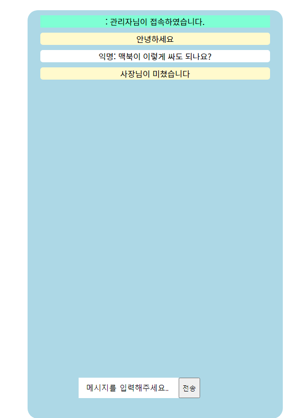 브라우저를 둘 사용하여 한 쪽은 관리자로 들어왔습니다