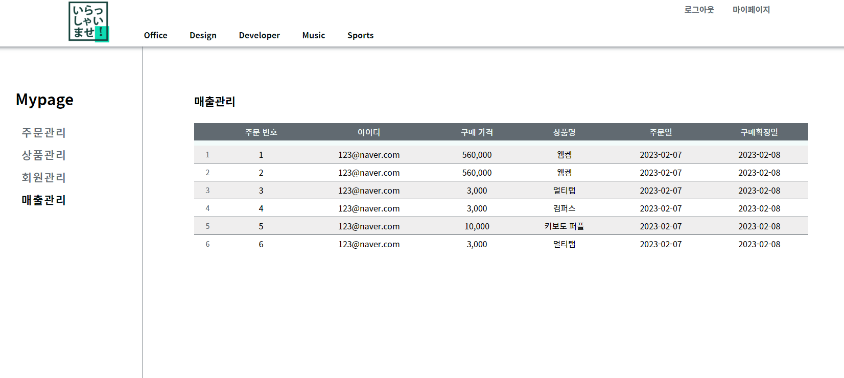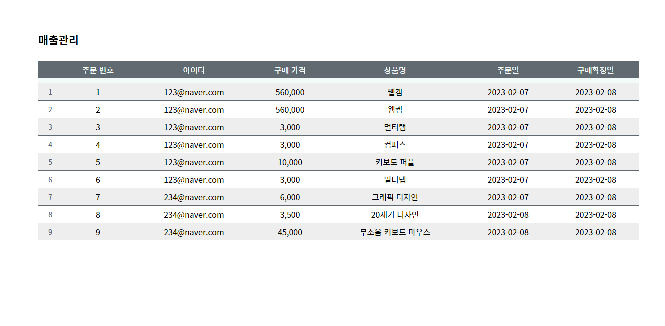 매출관리 페이지입니다