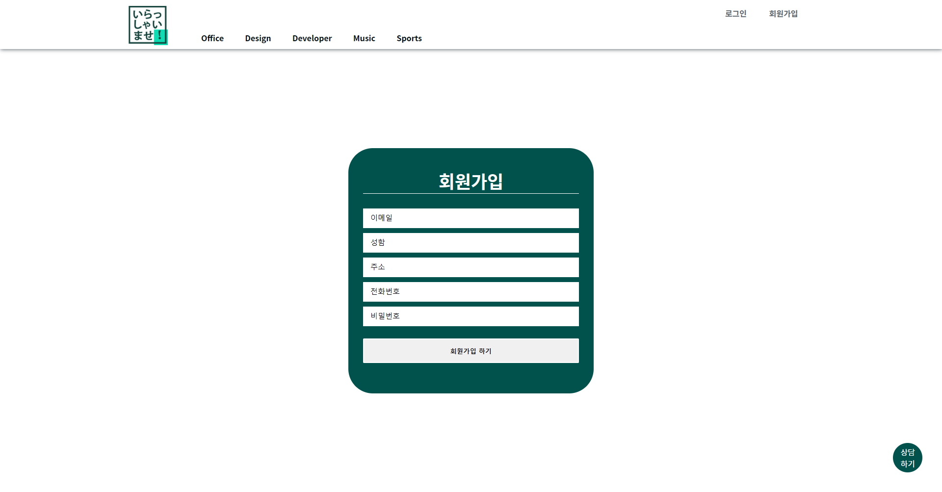 역시 이 또한 유저의 가입 화면으로 이후의 유저 기능에 상세한 내용을 보여드려야 하지만