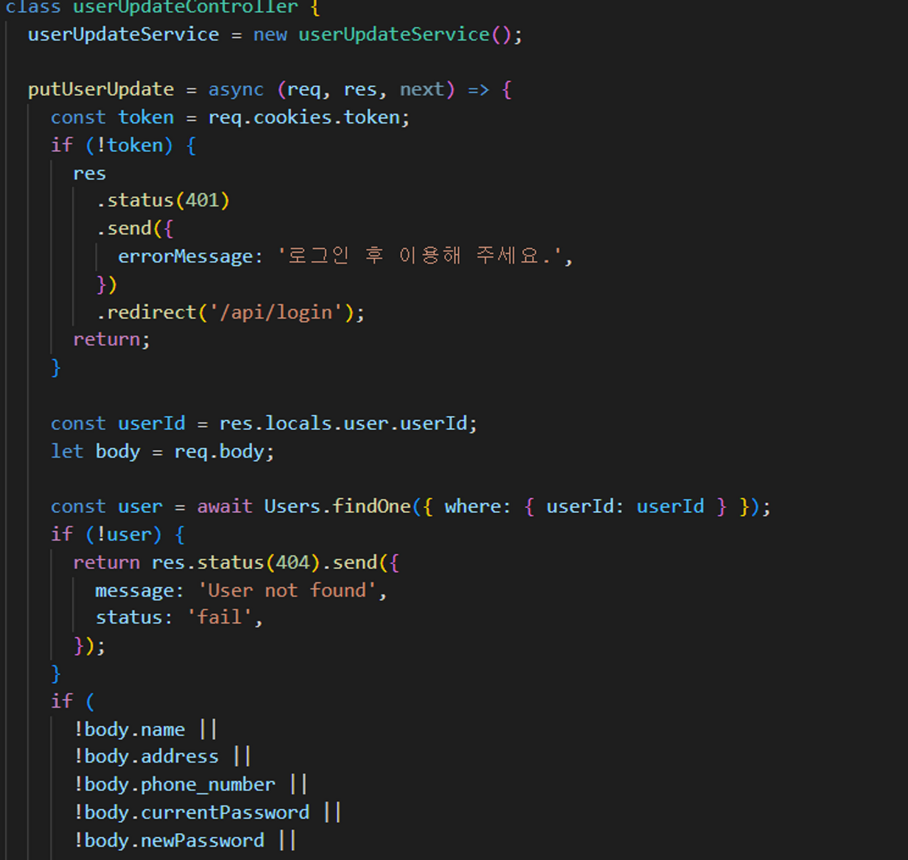 설명: 회원정보 수정 기능, 가장 참고 덜 받고 만든 코드라서
