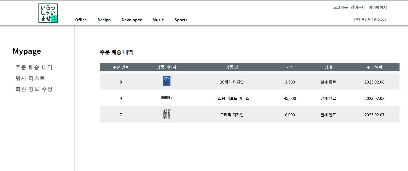 주문을 하게 되면 포인트가 금액만큼 차감되는 걸 보실 수 있습니다
