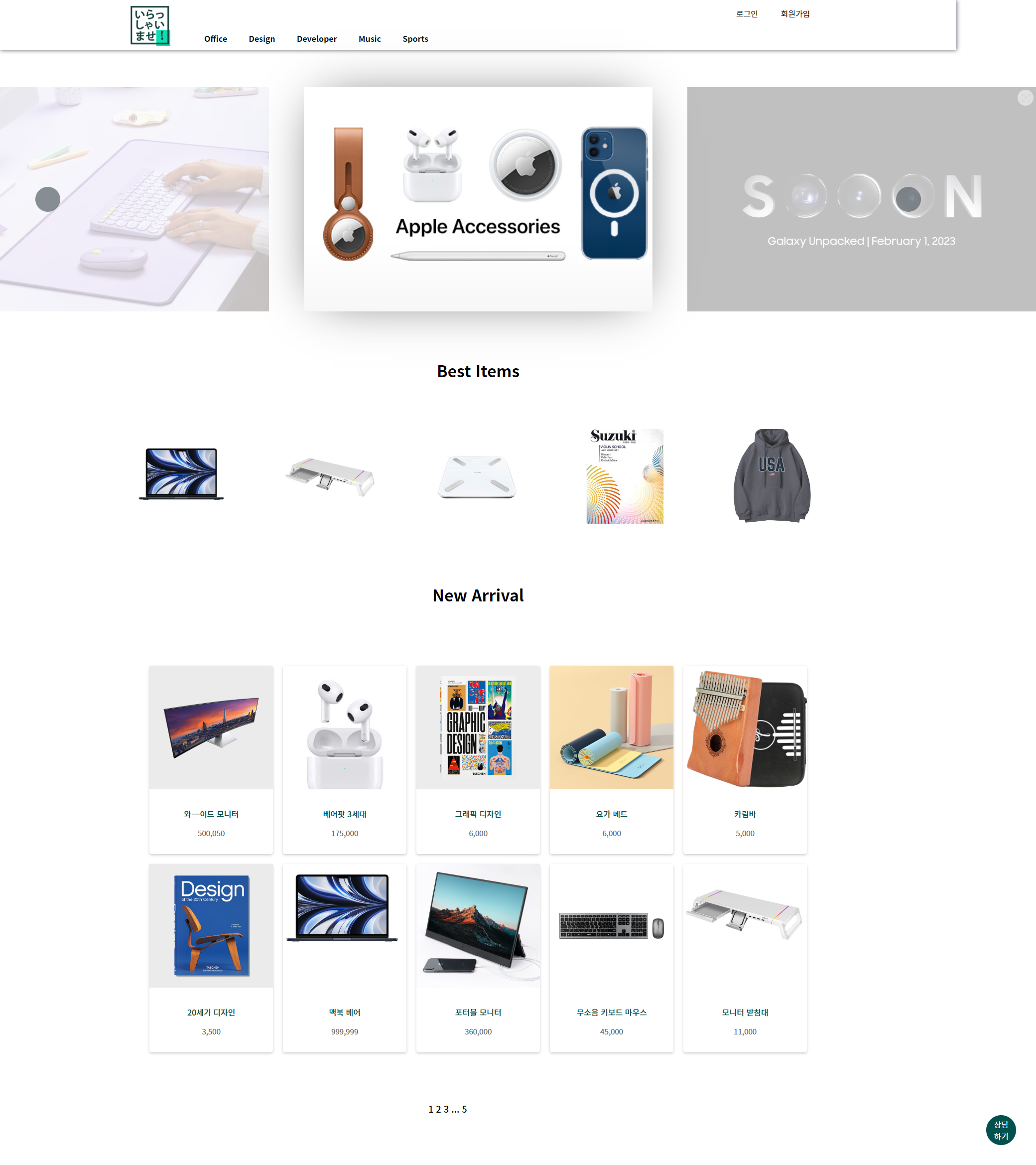 아래의 new arrival은 등록 된 상품을 최신 순으로 불러오고 있으며 페이지네이션을 사용하여