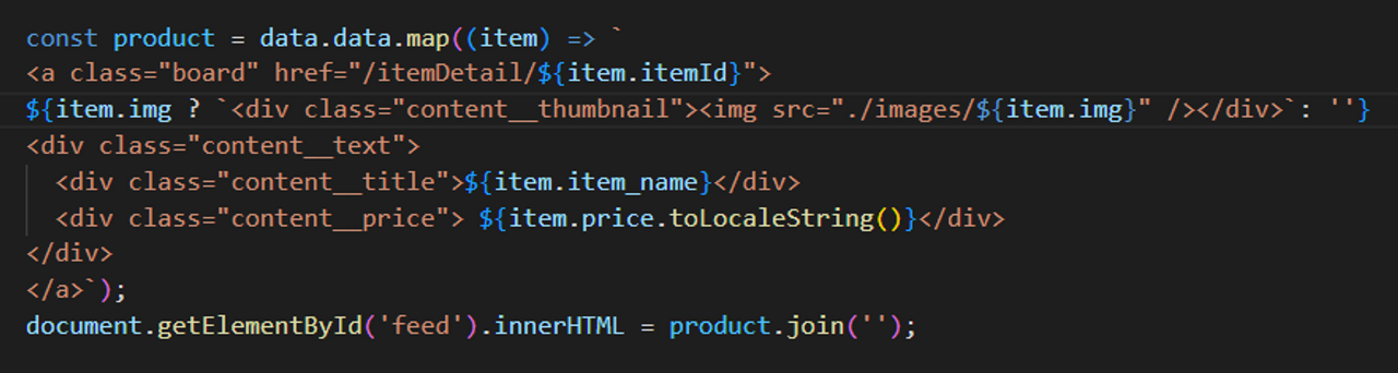 DB에서 가져온 상품들의 데이터가 하나의 카드에 전부 들어가는 현상이 생겨서 카드 하나당 한개씩 들어가게 만듬.