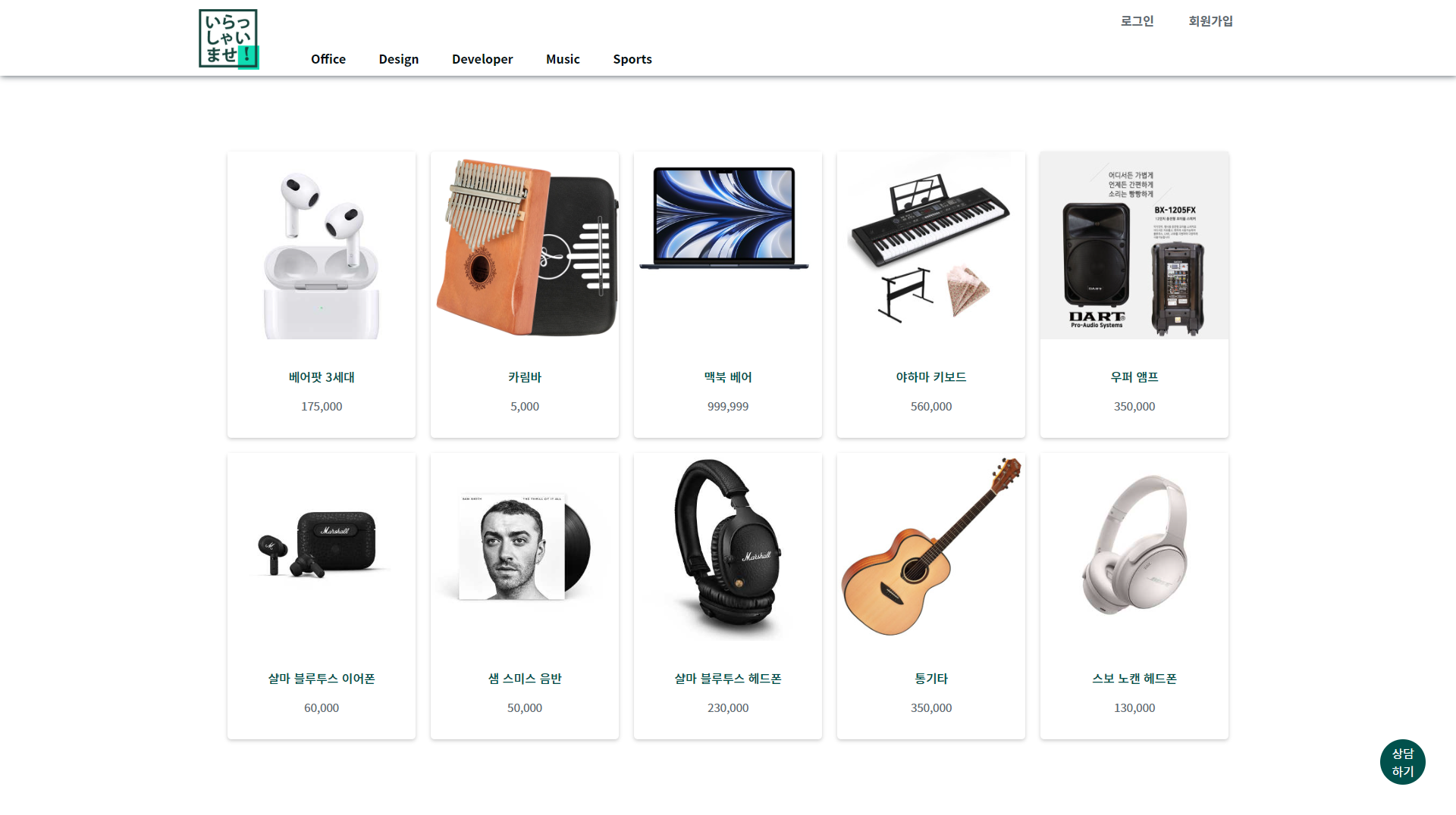 상품 속성에 Music으로 설정 된 상품을 불러오는 페이지 입니다