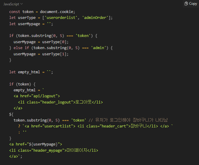 사용자 로그인 시 헤더에 로그아웃/ 위시리스트/ 마이페이지 3개의 카테고리가 뜨고,