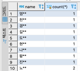 이면 이름 같은 사람들끼리 묶고, 수를 세줌