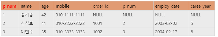 이름으로 엮어서 이름 월급 전번이 한 테이블로 표시되는 것