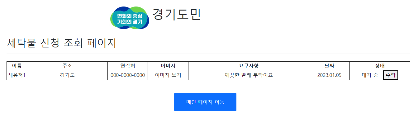 그러면 세탁물 조회 페이지로 들어가보겠습니다.