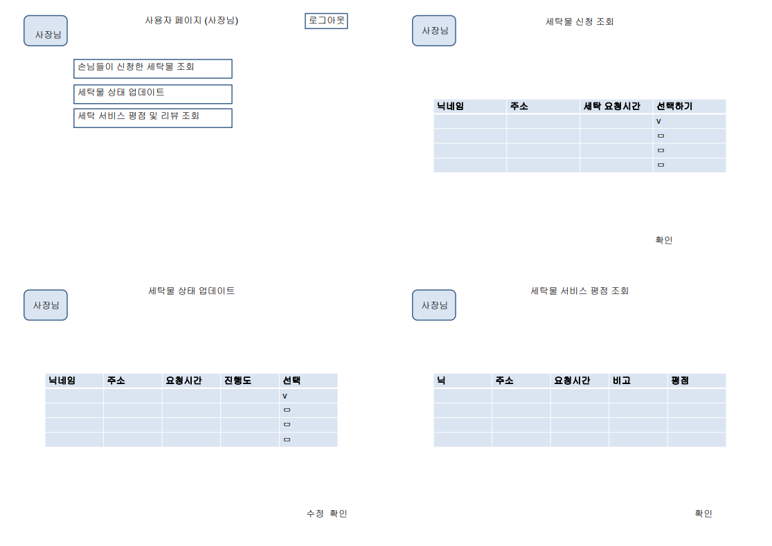 이용자들이 세탁 서비스 신청 시 사장이 선택할 수 있음