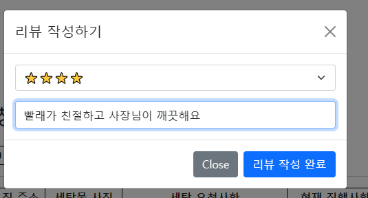 이용자들이 세탁 서비스에 대한 리뷰를 달 수 있음